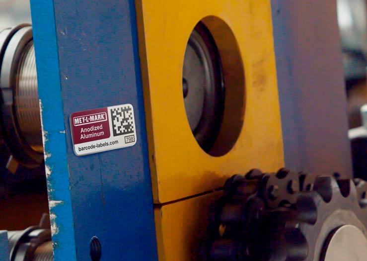 Super durable metal tags. Near immune to abrasion, chemicals, weather exposure, and temperature extremes. Print is sealed underneath an anodized oxide clear finish, as a result, they provide years of use and accurate barcode reading. Sticks well to plastics, metals, and powder coatings. Can be made with holes for hanging or other attachment.